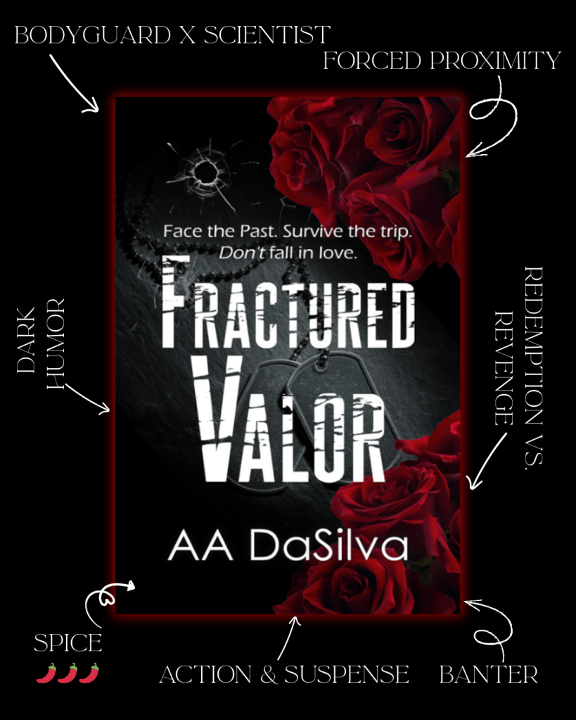 Sexy and suspenseful and unexpectedly funny, Fractured Valor has some of romance lovers’ favorite tropes: enemies-to-lovers, forced proximity, brother’s frenemy, just one room, and a healthy dose of scorching open-door spice.